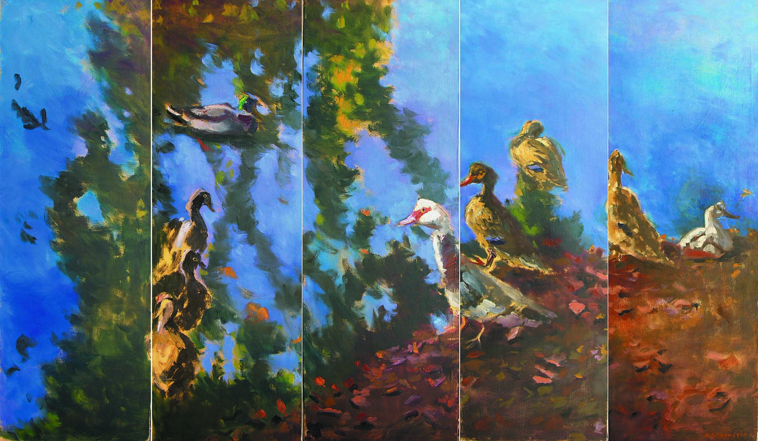 Le lac en automne, huile sur toile, 50 x 180 cm, 2018. Collection privée